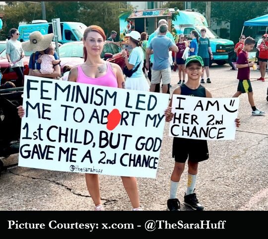 There is one more story that shows and debunks the feminists’ ulterior motives. This story involves Sara Huff. She writes it on her X profile’s pinned post, “My name is Sara Huff, and my journey has been one of deep pain, loss, and ultimately, redemption. I once stood proudly as a feminist, organizing protests and marches in favor of ab*rtion. At 22, I found myself pregnant, and the voices around me, my feminist friends, those I trusted, assured me it was nothing more than a “cl*mp of cells.” They told me ab*rtion was the path to empowerment, to my freedom. Without hesitation, I believed them.